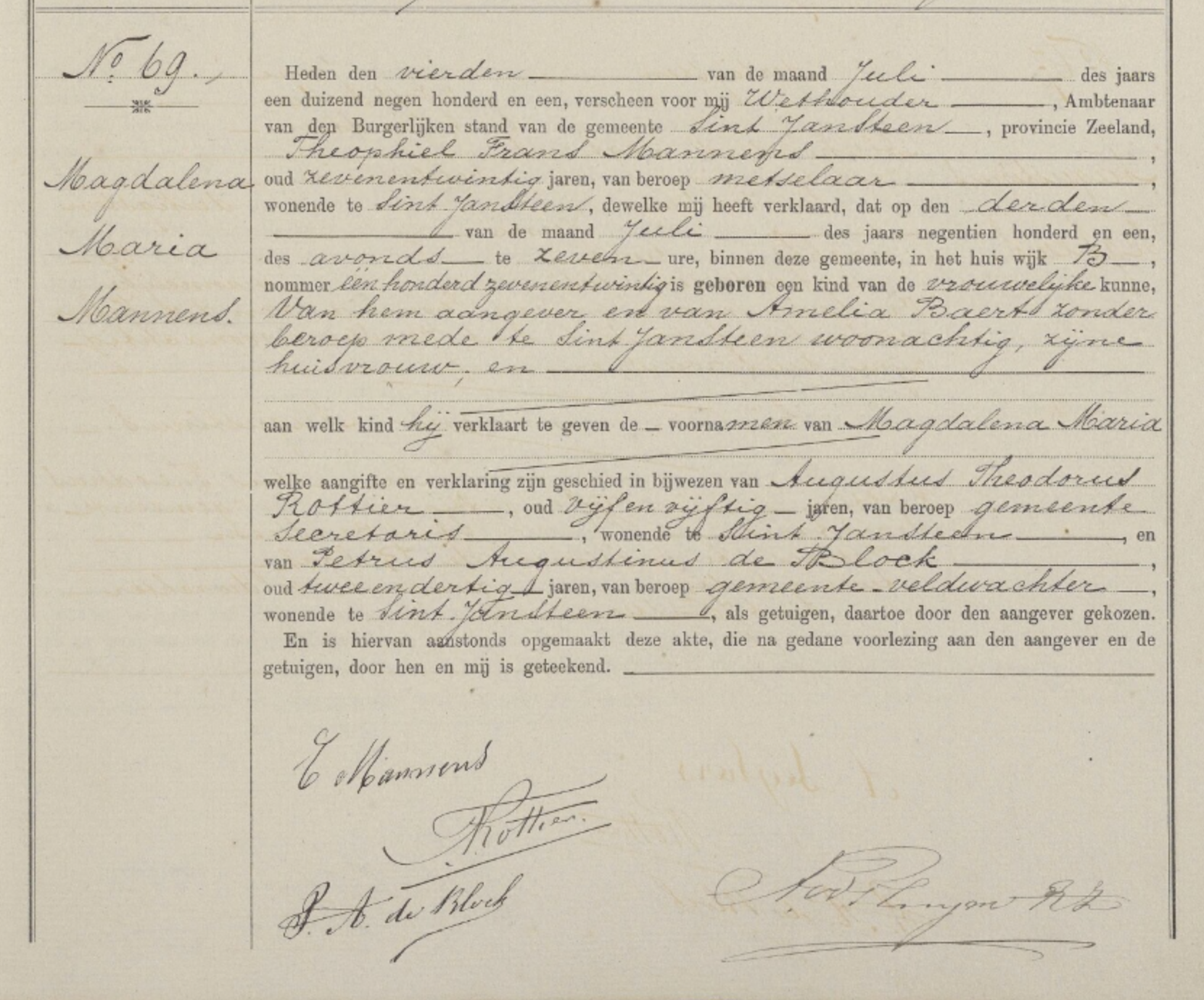 | Vader | Théophile Francois MannensThéophile Francois Mannens ![]() * 25-02-1874 Moerbeke, België † 23-05-1958 Sint Jansteen, Nederland ∞ Amelia Baert, 31-03-1897 Koewacht, Nederland, 5 kinderen |