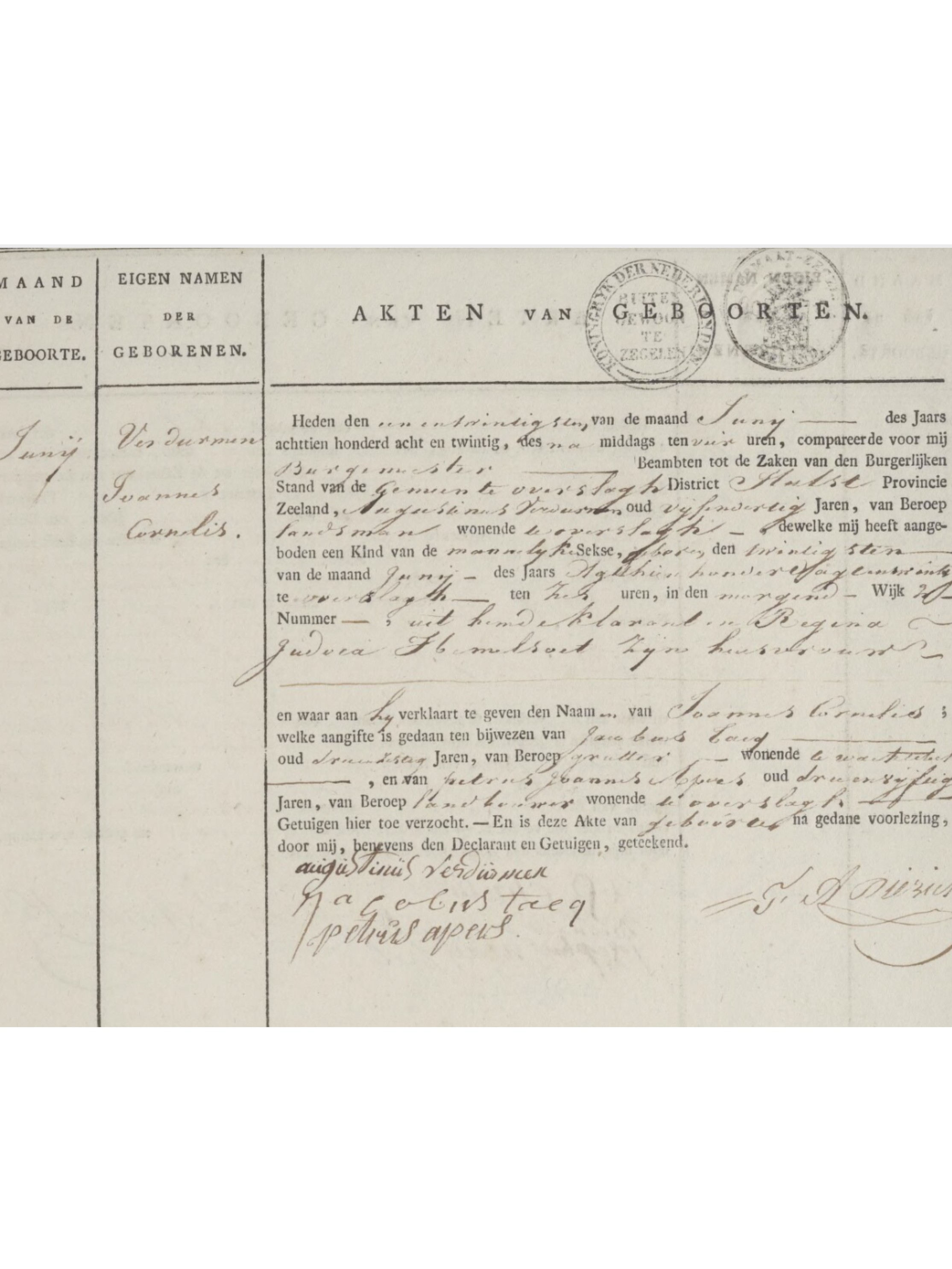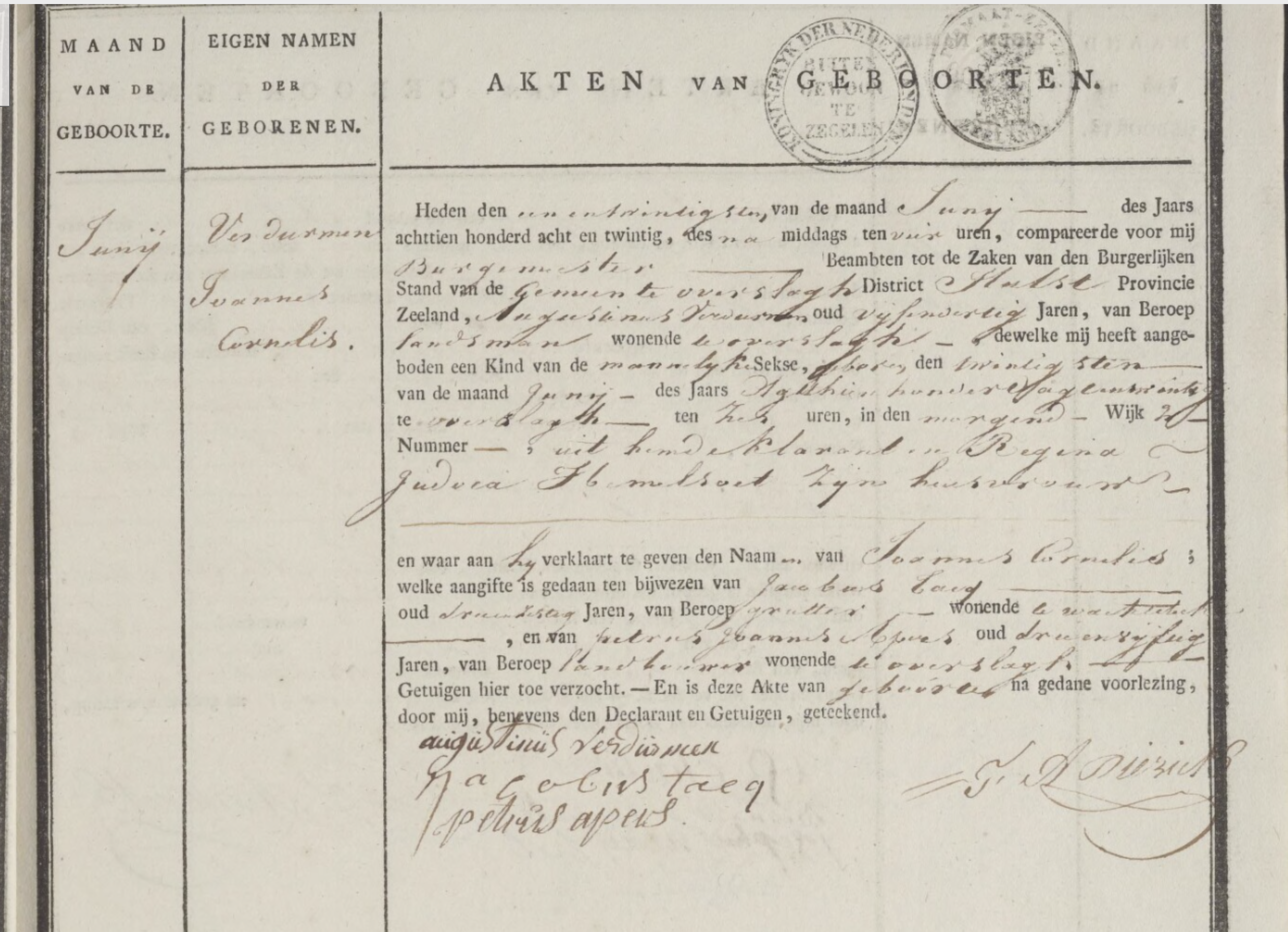 Augustinus VerdurmenAugustinus Verdurmen  * 16-03-1792 Overslag, Nederland † 11-01-1864 Overslag, Nederland ∞ Regina Judoca Hemelsoet, 12-08-1817 Overslag, Nederland, 6 kinderen ∞ Marie Anna de Clerck, 26-05-1836 Overslag, Nederland, 1 kind |