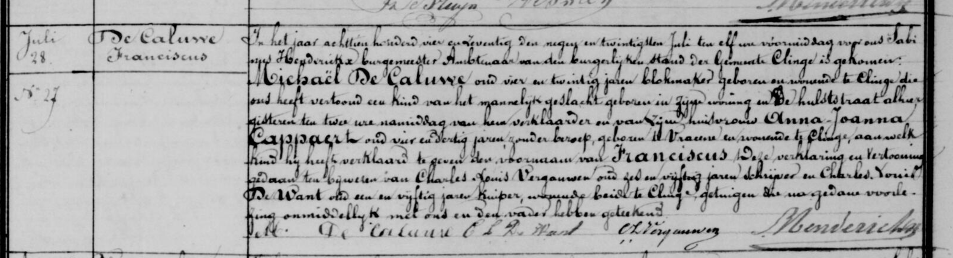 | Vader | Michael de CaluweMichael (Michel) de Caluwe ![]() * 02-04-1850 De Klinge ∞ Anna Joanna Cappaert, 1 kind |