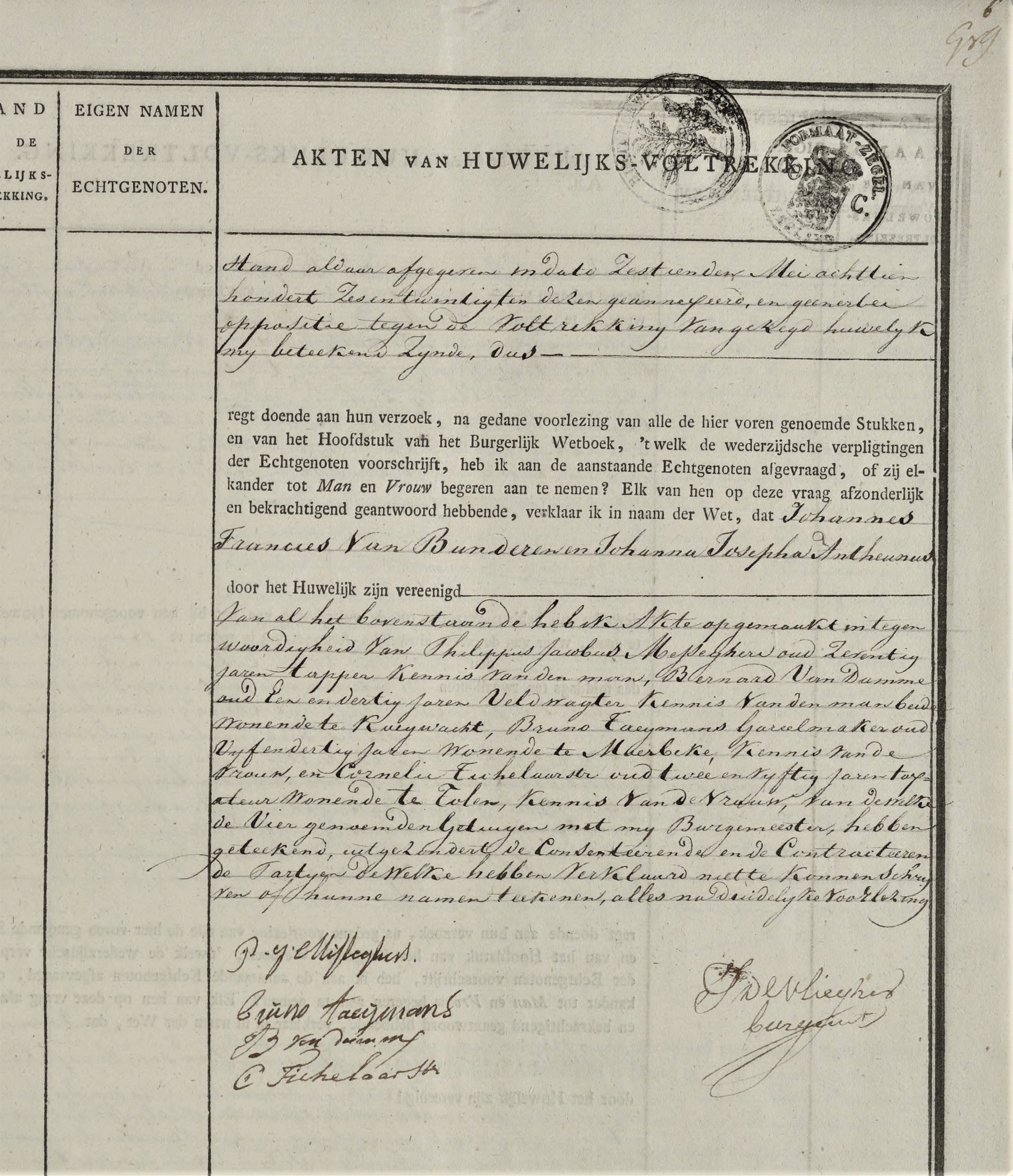 Johanna Josepha AntheunusJohanna Josepha Antheunus  * 1799 koewacht ∞ Joannes Franciscus van Bunder, 17-05-1826 |