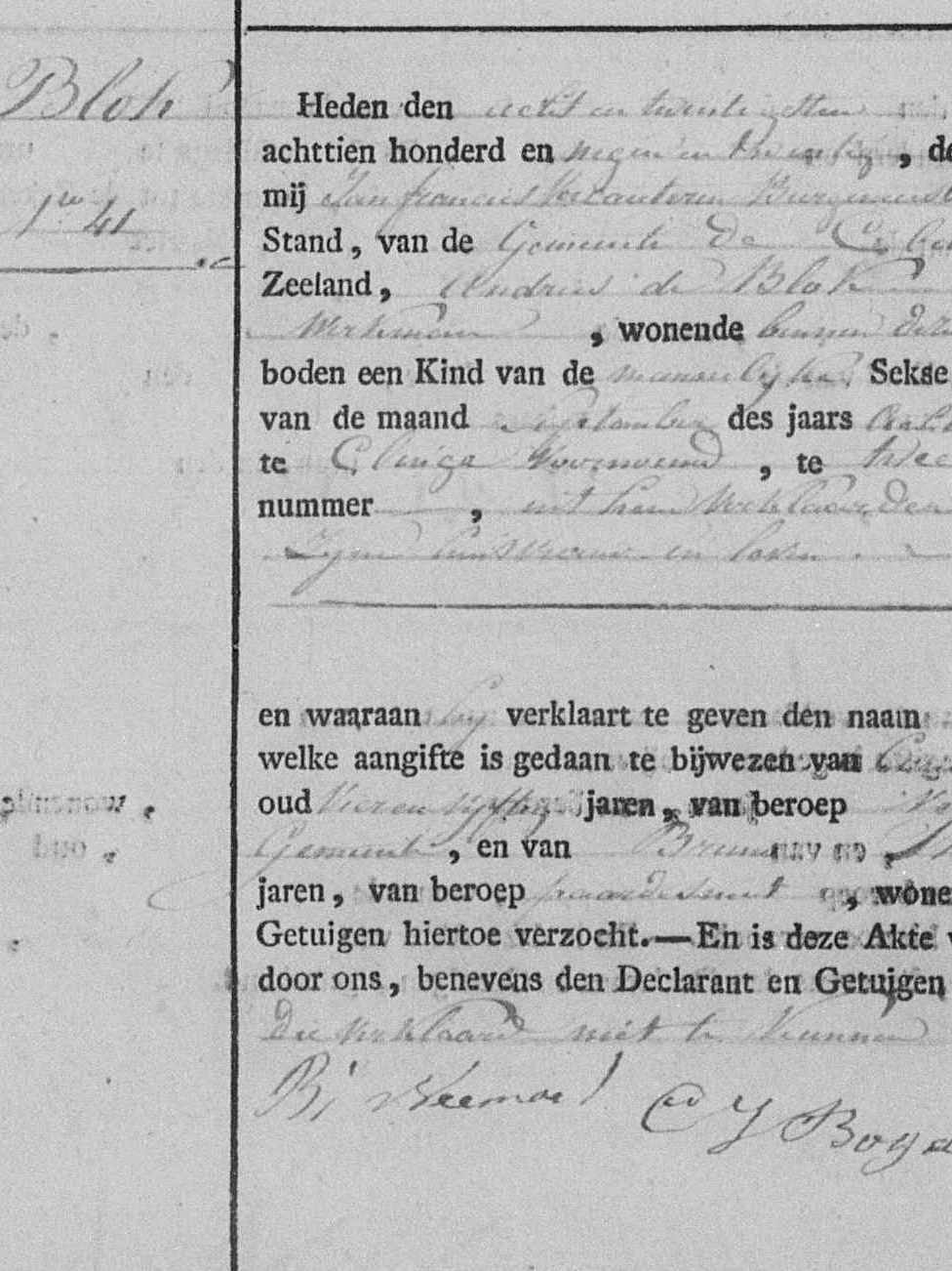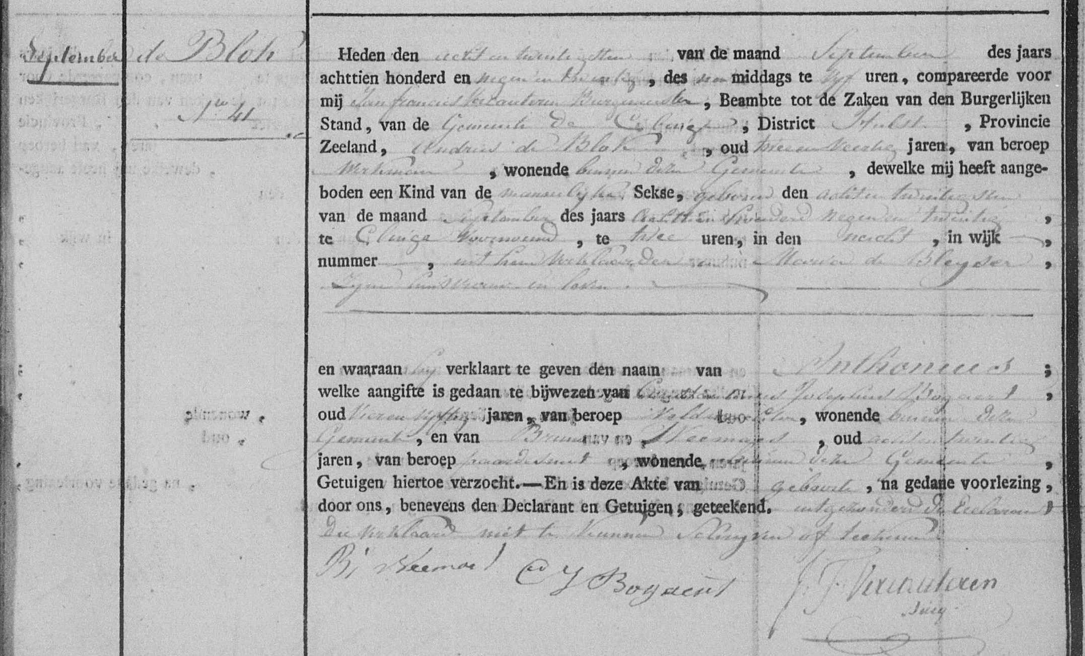 | Geboorteaangifte | 28-09-1829 aktenr:41/ Zeeuws Archief |