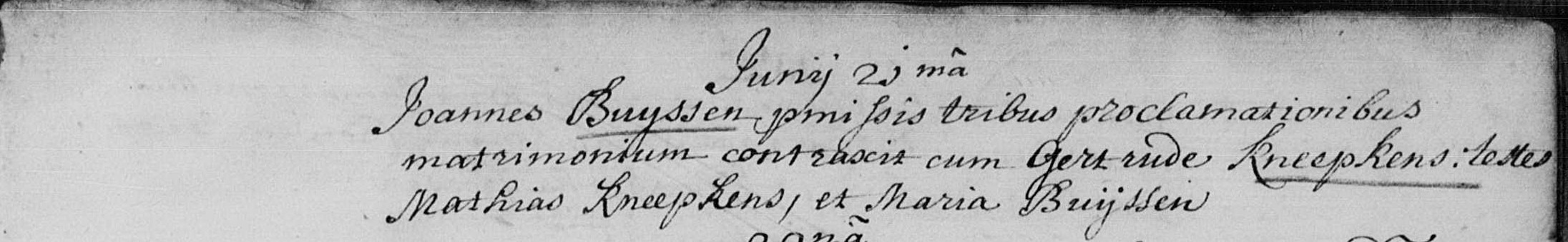 Gertrude KneepkensGertrude Kneepkens  * 31-05-1722 Weert, Nederland † 24-11-1811 Weert, Nederland ∞ Joannes Boessen, 21-06-1744 Weert, Nederland, 8 kinderen |