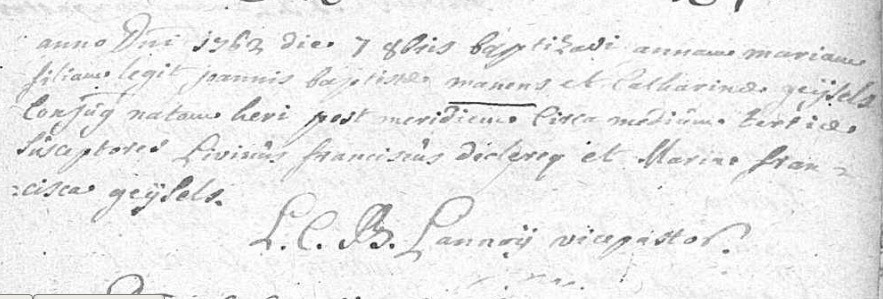| Moeder | Catharina GijselsCatharina Gijsels ![]() * 13-04-1730 Adegem, Maldegem, België † 13-04-1771 Oostwinkel, Zomergem, België ∞ Johannes Baptiste Mannens, 02-05-1754 Adegem, Maldegem, België, 11 kinderen |