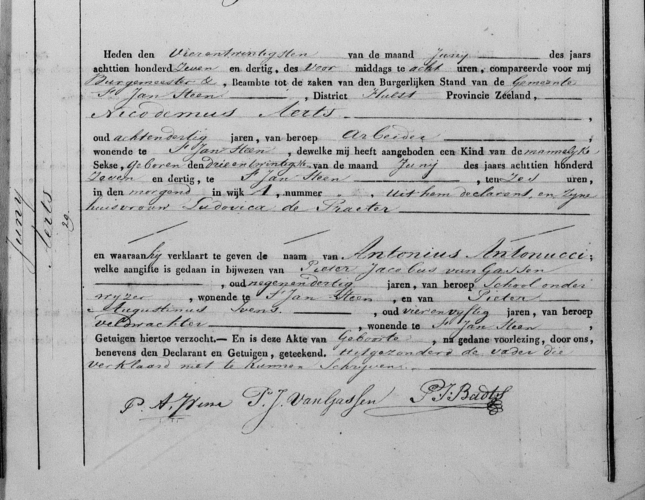 Nicodemus AertsNicodemus Aerts  * 28-02-1799 Doel (B) † 01-04-1876 Sint Jansteen, Nederland ∞ Ludovica de Praeter, 23-01-1833 Sint Jansteen, Nederland, 9 kinderen |