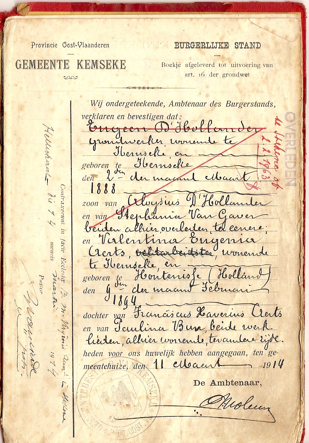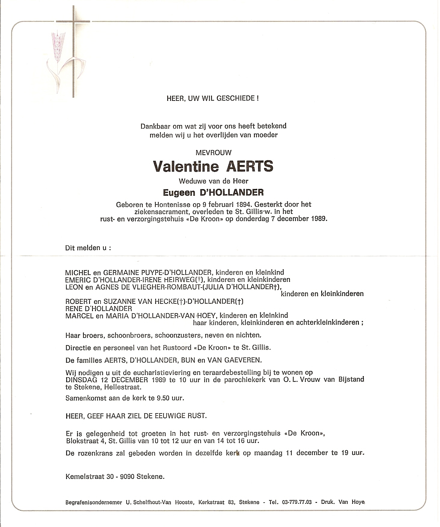 ∞ Valentina Eugenia Aerts, 11-03-1914 Kemzeke, 8 kinderen