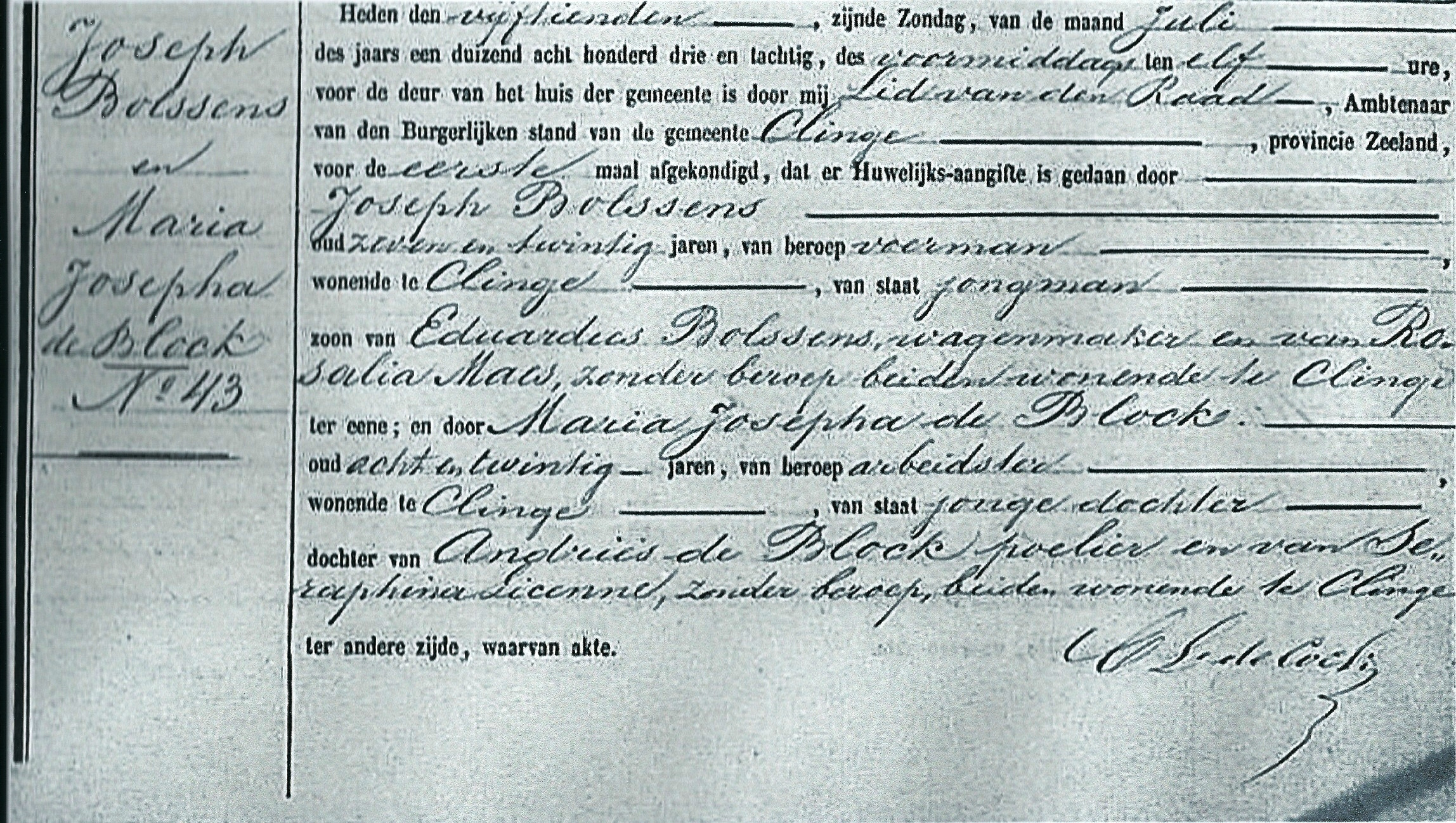| Vader | Andries de BlockAndries de Block ![]() * 10-09-1826 Clinge, Nederland † 09-11-1916 Hengstdijk, Nederland ∞ Seraphina Licenne, 27-04-1855 Clinge, Nederland, 4 kinderen |