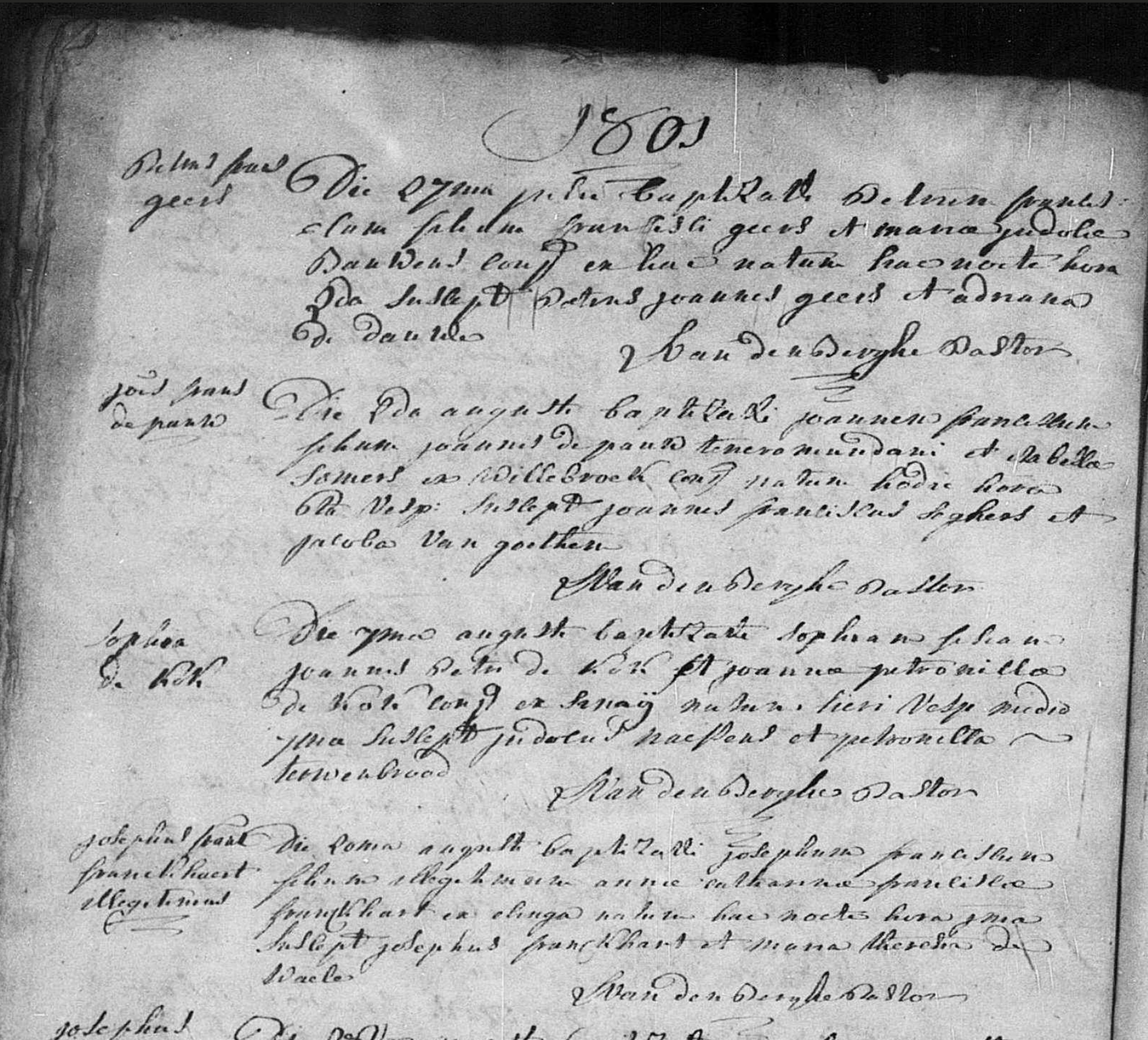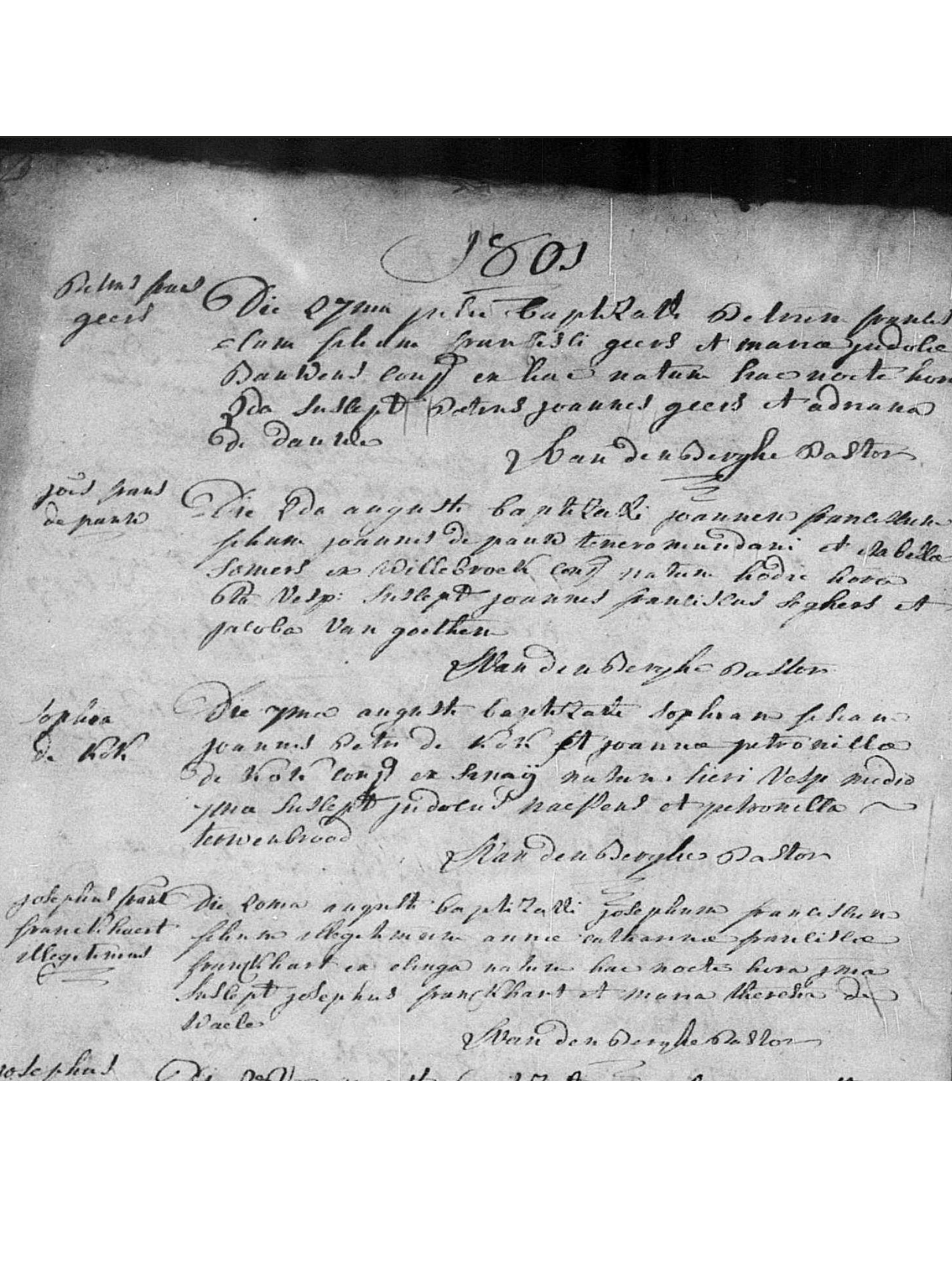 Getuigen: Josephus Franckaert en Maria Theresia de Waele
