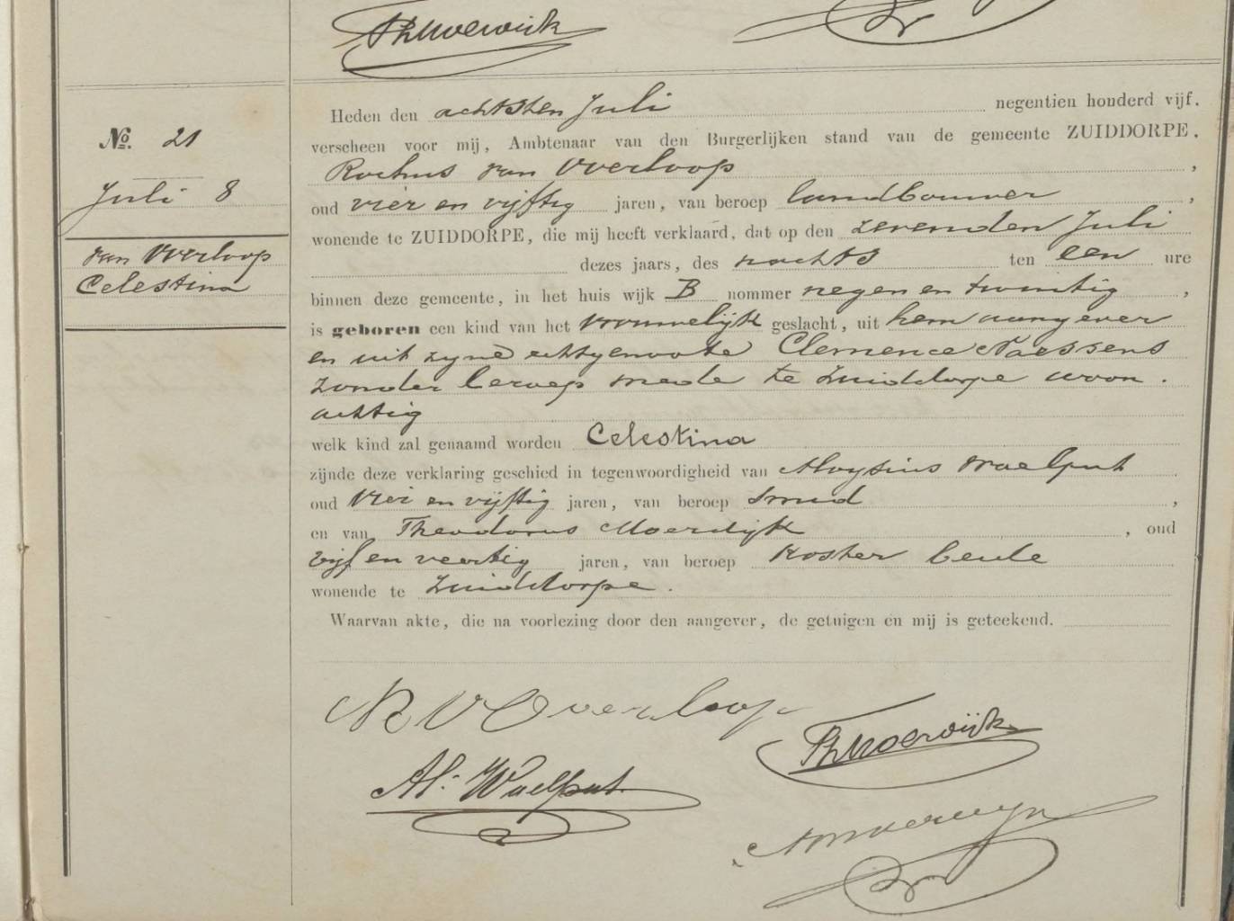 Notitie bij geboorte ZDD-G-1905, akte 21 |