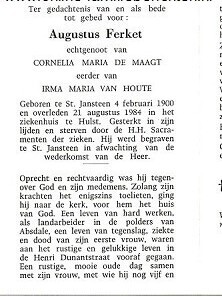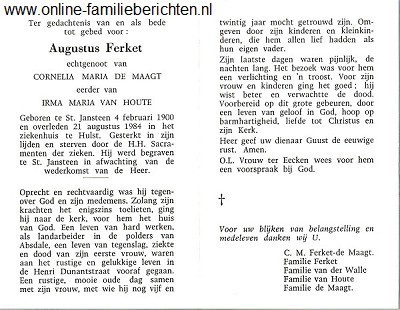 | Moeder | Virginia RoelsVirginia Roels ![]() * 11-01-1861 Sint Jansteen, Nederland † 23-11-1937 Sint Jansteen, Nederland ∞ Josephus Alphons Maria Ferket, 9 kinderen |