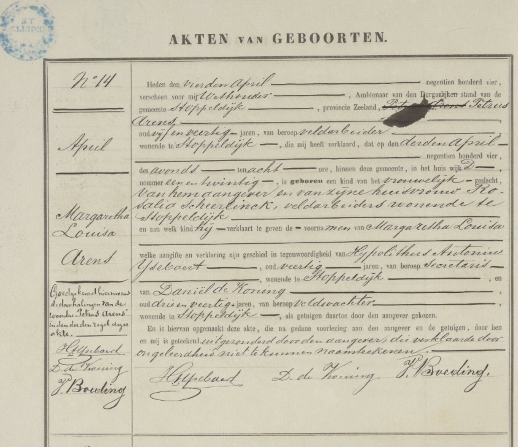 BS Stoppeldijk, Geboorten 1904, akte 14