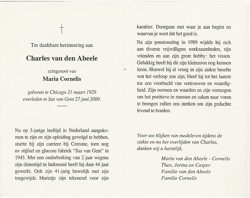 Charles Petrus van den Abeele overlijden