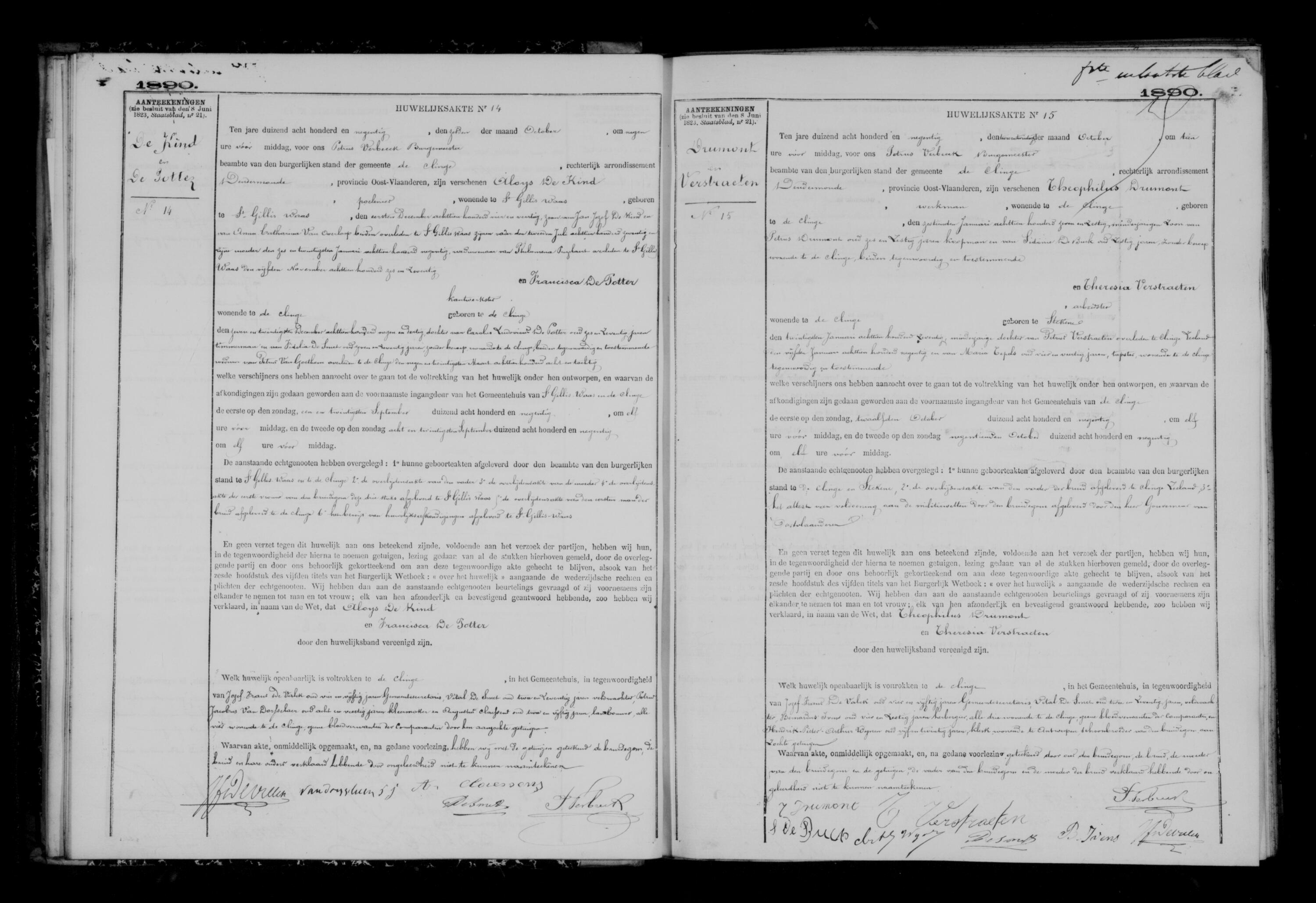 BS De Klinge, Huwelijken 1890, akte 14