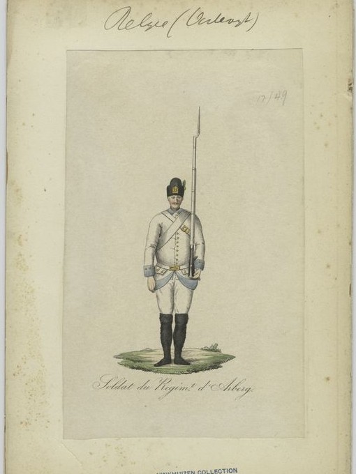 Afbeelding van een soldaat uit het regiment d'Arberg 1760