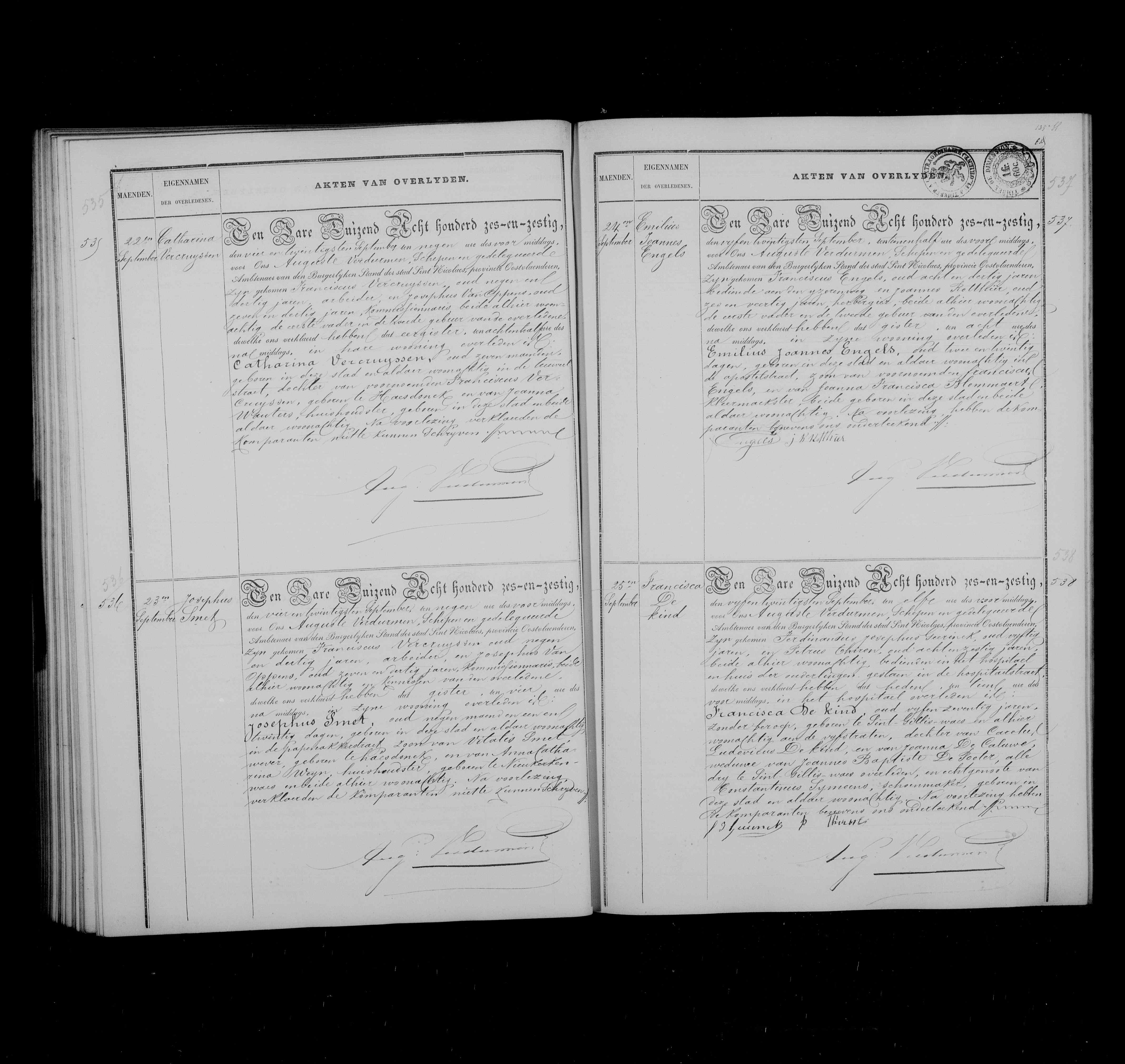 BS Sint-Niklaas, Overlijdensregister 1866, akte 538 (FS filmrol 004201755)