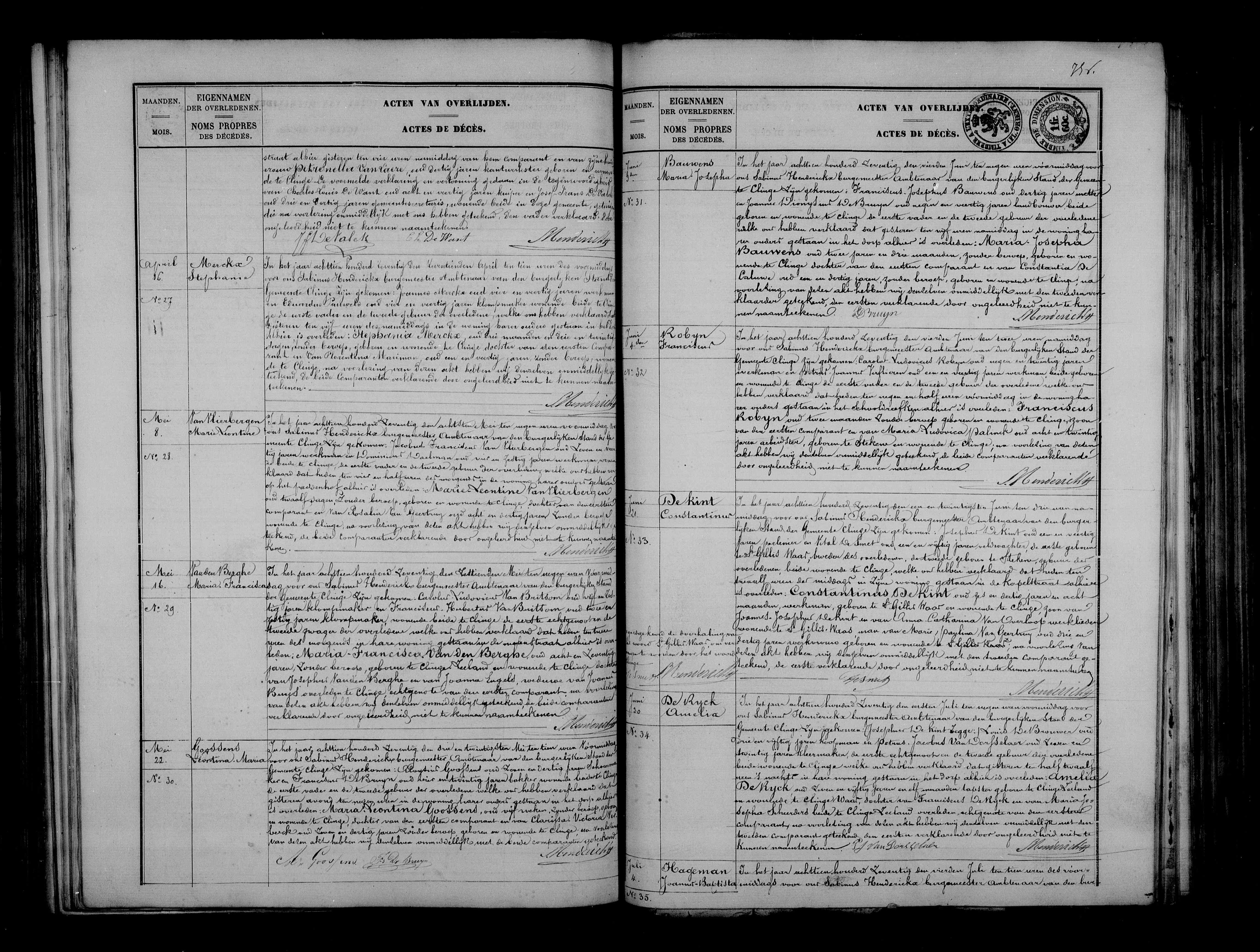 BS De Klinge, Overlijdensregister 1870, akte 33