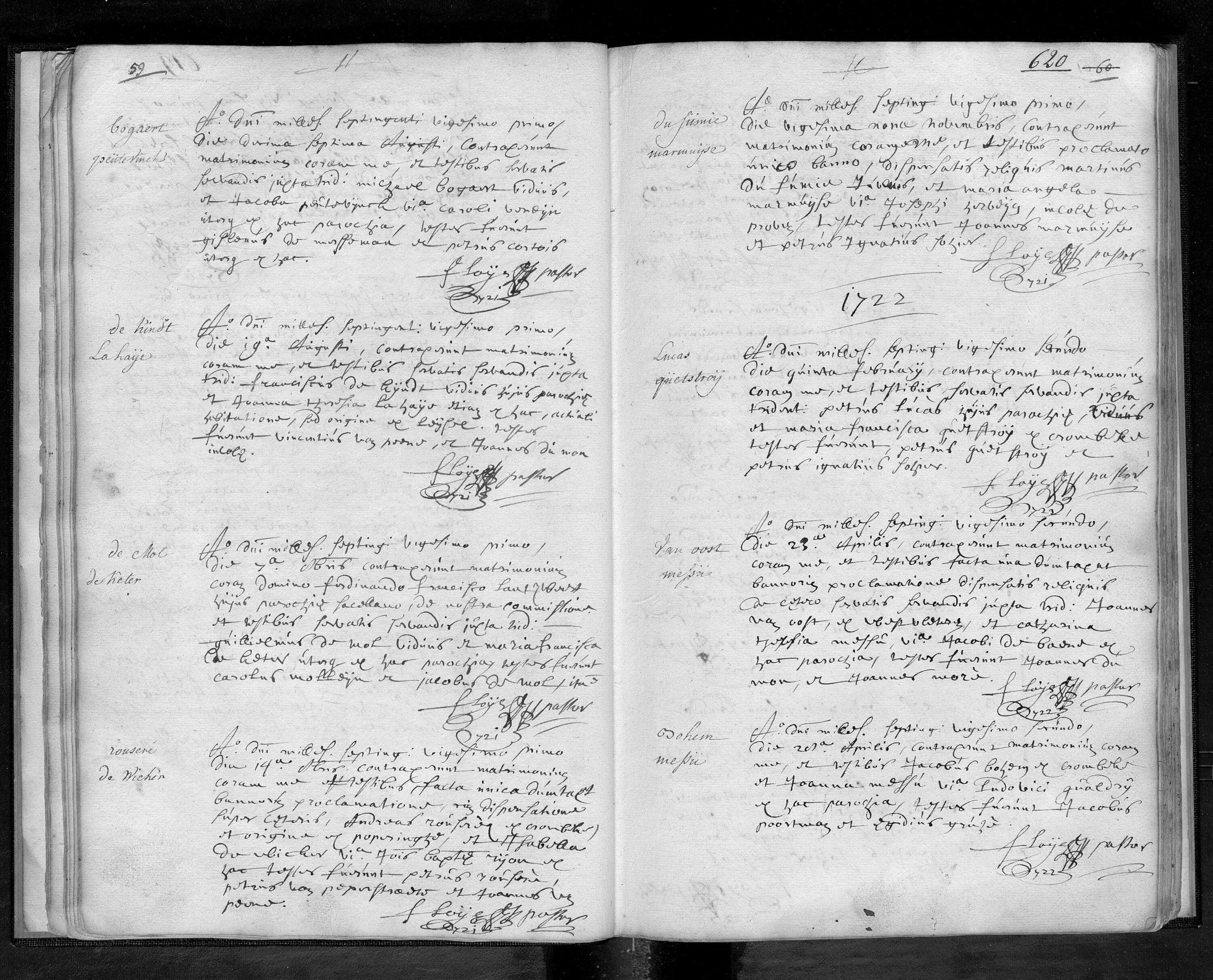 Parochieregisters Sint Victor, Proven - Huwelijken 1721, f.620r