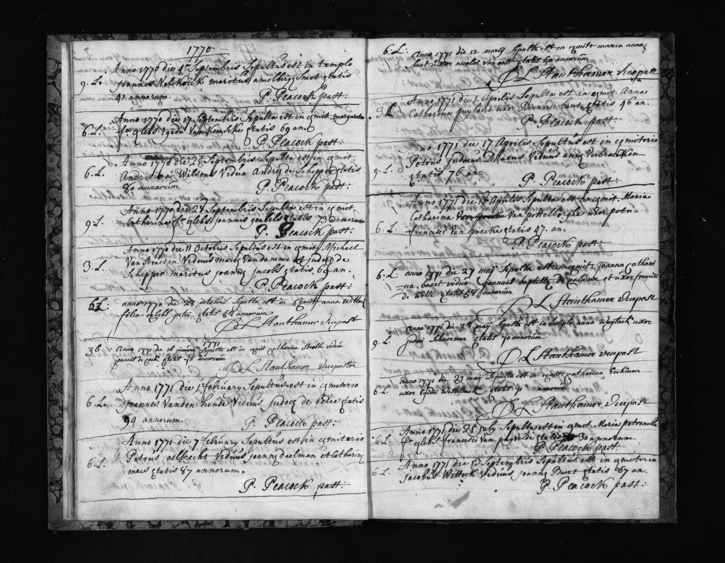 Belgium, Oost Vlaanderen, Belsele, Parochie Sint-Andreas en Sint-Ghislenus, parochieregisters: Overlijdens, huwelijken, index op overlijdens, 512-0000-000-00133-000, 1766-1797.