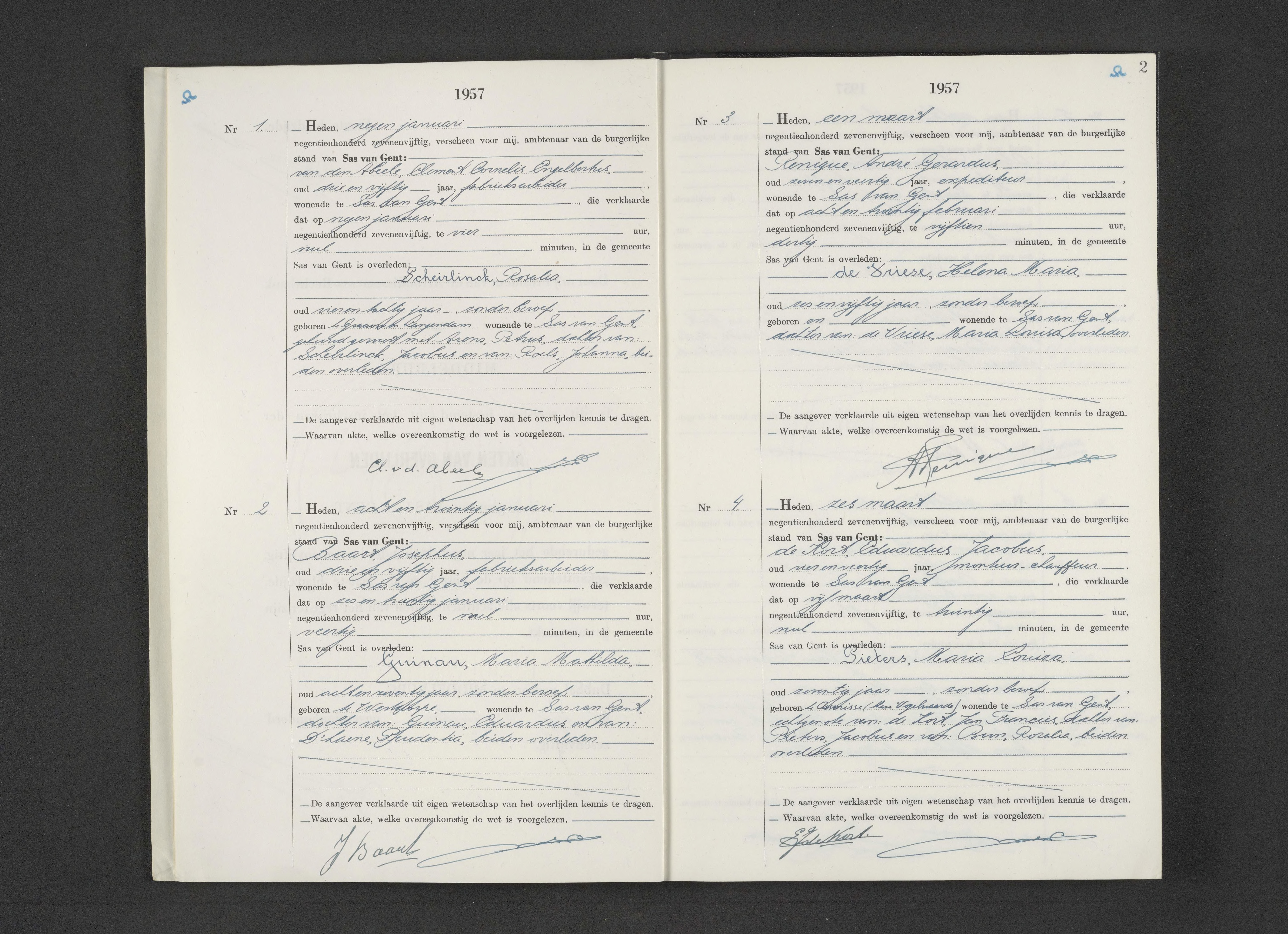 BS Sas van Gent, Overlijdens 1957, akte 1,