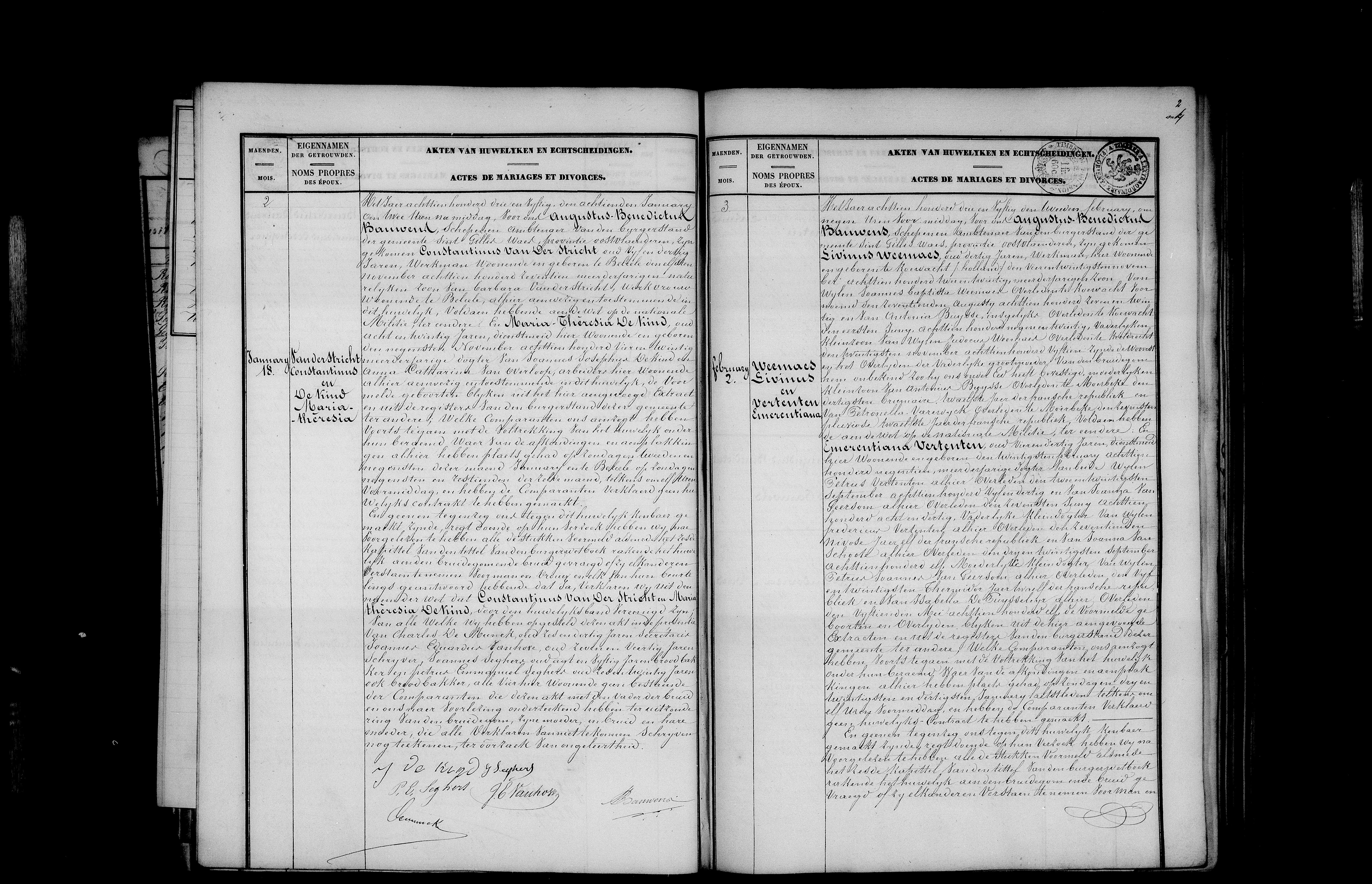 "Belgique, Flandre-Orientale, registres d’état civil, 1541-1914," database with images, FamilySearch (https://familysearch.org/ark:/61903/3:1:33S7-9P32-KY2?cc=2138513&wc=Q82R-8ZP%3A1009327601%2C1068880101 : 16 May 2016), Sint-Gillis-Waas > Huwelijken 1834-1866 > image 331 of 602; België Staatsarchief (Belgium State Archives), Oost-Vlaanderen. FS Filmnr. 004817756 |