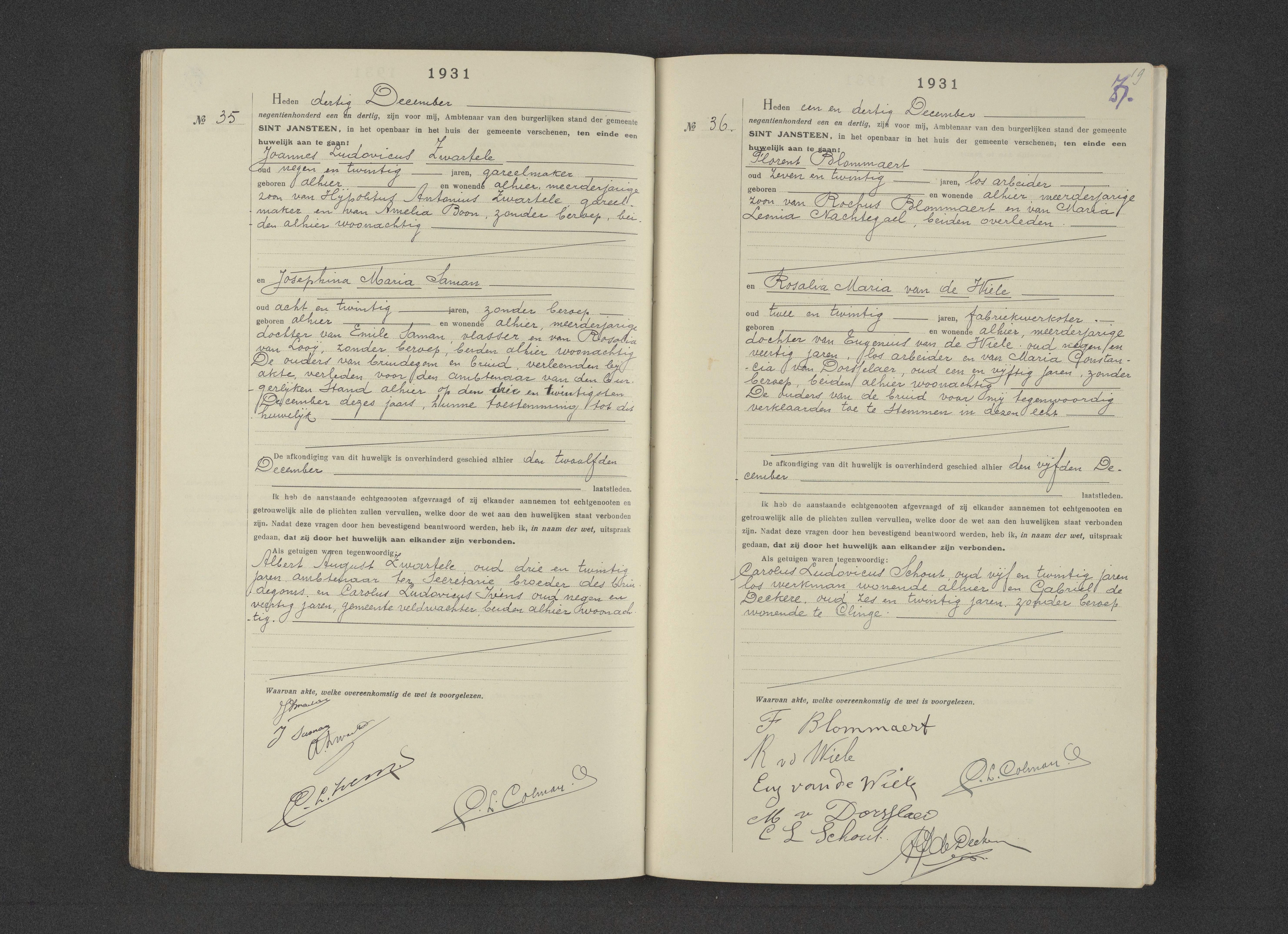BS Sint Jansteen, Huwelijken 1931, akte 35